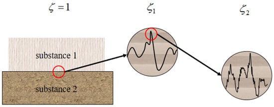 The roughness of the sealing parts is also an important factor affecting the sealing performance of the battery; based on Persson’s rough surface penetration theory [14], the surface of any two precision objects may not be able to maintain a complete and stable seal. Under microscopic conditions, the surface of any object is non-smooth. As shown in Figure 3, the contact surface of the two objects can be seen after magnification of the contact surface of the existence of peaks and valleys. These surface gaps can lead to leakage of reaction gases or liquids in fuel cells [15]. Persson rough surface gap permeability theory based on Poiseuille fluid theory [16,17] and Stauffer–Aharony Persson rough surface gap permeation theory is based on Poiseuille fluid theory and Stauffer–Aharony through flow theory [18] to quantitatively represent the leakage rate. Persson in the rough surface contact mechanics theory creatively introduces the amplification rate and defines the contact pressure probability density function related to the amplification rate as ; the function in the definition domain can be obtained by integrating the current amplification rate of the real contact area and the ratio of the theoretical contact area A0. The calculation equation is as follows [19,20]: