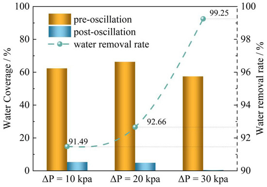 Variation in water coverage at different pressure pulsation amplitudes during the first variable pressure cycle. Reprinted with permission from Ref. [64]. Copyright 2024 Elsevier.