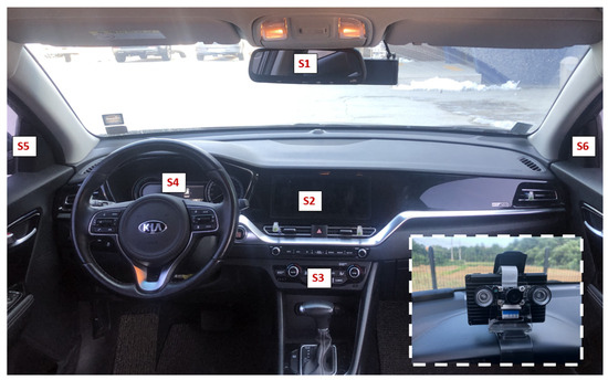 Drowsiness detection judges drowsiness based on eye blinking. The indicator used here is PERCLOS, which represents the ratio of eye closure. Hu Shuyan et al. [18] predicted drowsiness using SVM (Support Vector Machine) from eyelid-related parameters extracted from EOG (Electrooculography) data collected in the EU Project SENSATION’s driving simulator. Dasgupta et al. [19] constructed a real-time driver drowsiness detection system reflecting various conditions of actual driving situations, such as lighting, facial rotation, and vehicle vibration. They confirmed a processing speed of 9.5 fps and drowsiness detection accuracy of over 97% in actual driving environments, proving that it is possible to achieve an accuracy level close to that of EEG signal analysis-based DDS, even with the driver video analysis method. However, recent driver monitoring system evaluation criteria also require the classification of driver inattention status.