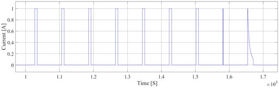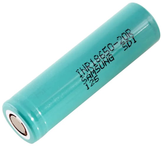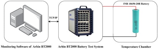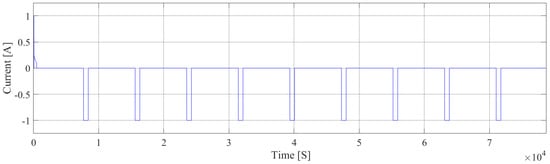 - C-rate: The pulse charge–discharge tests were conducted using a current corresponding to a C-rate of 0.5C [64]. The C-rate is the rate at which a battery is charged or discharged [66,67]. For example, in our experiments, the rated capacity was 2 Ah, and a C-rate of 0.5C meant the battery was charged or discharged at half the usual rate, taking two hours to complete. The corresponding charging or discharging current would be 1 A.