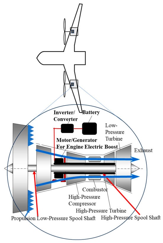 - Hoogreef, M.; Vos, R.; de Vries, R.; Veldhuis, L.L. Conceptual Assessment of Hybrid Electric Aircraft with Distributed Propulsion and Boosted Turbofans. In Proceedings of the AIAA SciTech 2019 Forum, San Diego, CA, USA, 7–11 January 2019. [Google Scholar]