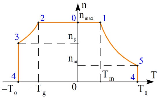 - Acceleration while maintaining a constant torque T0 = 1240 N∙m to a speed nm = 1427 rpm (plot sections 4–5);