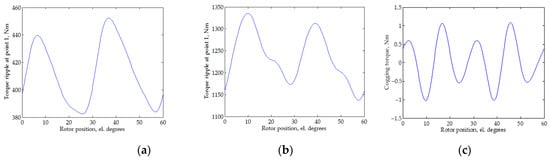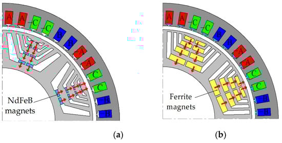 - Barcaro, M.; Pradella, T.; Furlan, I. Low-torque ripple design of a ferrite-assisted synchronous reluctance motor. IET Electr. Power Appl. 2016, 10, 319–329. [Google Scholar] [CrossRef]
