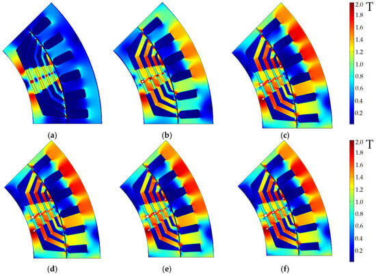 - Ibrahim, M.N.; Silwal, B.; Sergeant, P. Permanent Magnet-Assisted Synchronous Reluctance Motor Employing a Hybrid Star-Delta Winding for High Speed Applications. In Proceedings of the 2018 XIII International Conference on Electrical Machines (ICEM), Alexandroupoli, Greece, 3–6 September 2018. [Google Scholar]