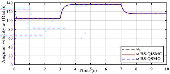 Figure 3 shows the time response of rotor angular speed represented by the state for the two controllers BS-QSMDO and BS-QISMC. In terms of transient characteristics, the BS-QSMDO shows the highest peak overshoot as compared to other controllers. On the other hand, BS-QISMC has no overshoot. However, the response of BS-QSMDO is faster than that based on BS-QISMC. Figure 4 shows the behavior of tracking error based on the two controllers and it is clear that the two controllers give approximately the same steady-state error. Table 2 reports the RMS of the tracking error.