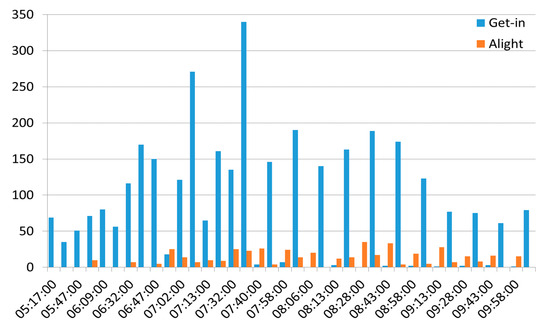 Firstly, random calls are generated and assigned to the train. The last step is checking the vehicles available that require relocation and matching between OD pairs of the incoming user with the vehicle pre-scheduled for the outgoing trips. The matching between the departure times from the station towards the Monterotondo areas (thus incoming transport demand) and the arrival times at the station of residents (outgoing) are inherently predetermined; in fact, trains arriving at Monterotondo then depart towards Rome, or if they terminate, there is bound to be at least one more train in the opposite direction (the railway line is double-tracked with an average frequency of one train every 15 min).