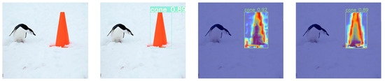 To validate the effectiveness of the proposed algorithm in different scenarios, a total of 773 images of traffic cones and buckets in both real and virtual traffic scenes were obtained through field photography and online collection. These images encompass various scenes and multiple angles, including cases of overlap, shadows, and occlusions. In this experiment, the LabelImg tool from the Python library was used for manual annotation of the collected images, completing the establishment of the dataset. The dataset was divided into training, validation, and test sets in an 8:1:1 ratio, resulting in 618, 77, and 78 images, respectively. The model’s effectiveness is validated on the validation set using the weights obtained after training, and its generalization capability is assessed on a test set that the model has not been exposed to previously.