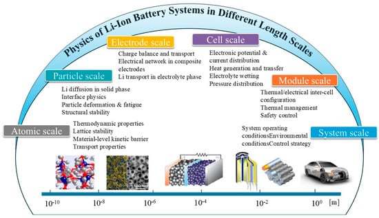 Rechargeable batteries operate through a sophisticated interplay of physical, chemical, and electrochemical reactions occurring across multiple scales, from molecular to cell-level to system-wide dynamics. These processes are fundamental to determining battery performance and efficiency. To address this complexity, researchers employ multiscale modeling (Table 1), which integrates phenomena across different scales into a cohesive framework [57]. This approach provides a deeper understanding of how microscopic interactions influence macroscopic properties and overall battery functionality (Figure 2). By bridging these scales, multiscale modeling enhances the study of battery behavior and performance, offering valuable insights to guide future advancements.