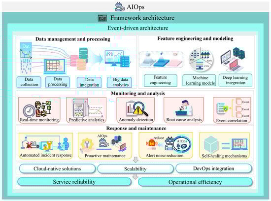 AIOps represents a sophisticated convergence of machine learning and advanced data analytics within the domain of information technology infrastructure (Figure 4). The methodology’s primary objectives encompass systematic task optimization, intelligent decision-making enhancement, and comprehensive system performance improvement. The foundational components of AIOps are characterized by the following critical elements: