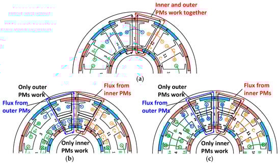 Machine topologies. (a) TC−SDRPM. (b) TC−PDRPM. (c). TW−PDRPM.