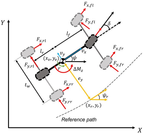 - Guo, J.; Luo, Y.; Hu, C.; Tao, C.; Li, K. Robust combined lane keeping and direct yaw moment control for intelligent electric vehicles with time delay. Int. J. Automot. Technol. 2019, 20, 289–296. [Google Scholar] [CrossRef]