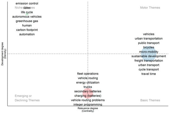 Thematic mapping identified two central themes: electric micro-mobility and technological innovations. These are considered fundamental but yet-to-mature themes. Electric micro mobility can reduce operational costs in last-mile delivery compared to other electric vehicles. However, widespread adoption may be hindered by infrastructure limitations, limited battery life, and safety concerns for riders. Secondary batteries are one technological advancement that can significantly increase the operational efficiency of electric micromobility. Further analysis of the most cited publications revealed that distance, safety, price/cost, environmental conditions, and perceived usefulness influence user acceptance of electric vehicles in last-mile delivery [