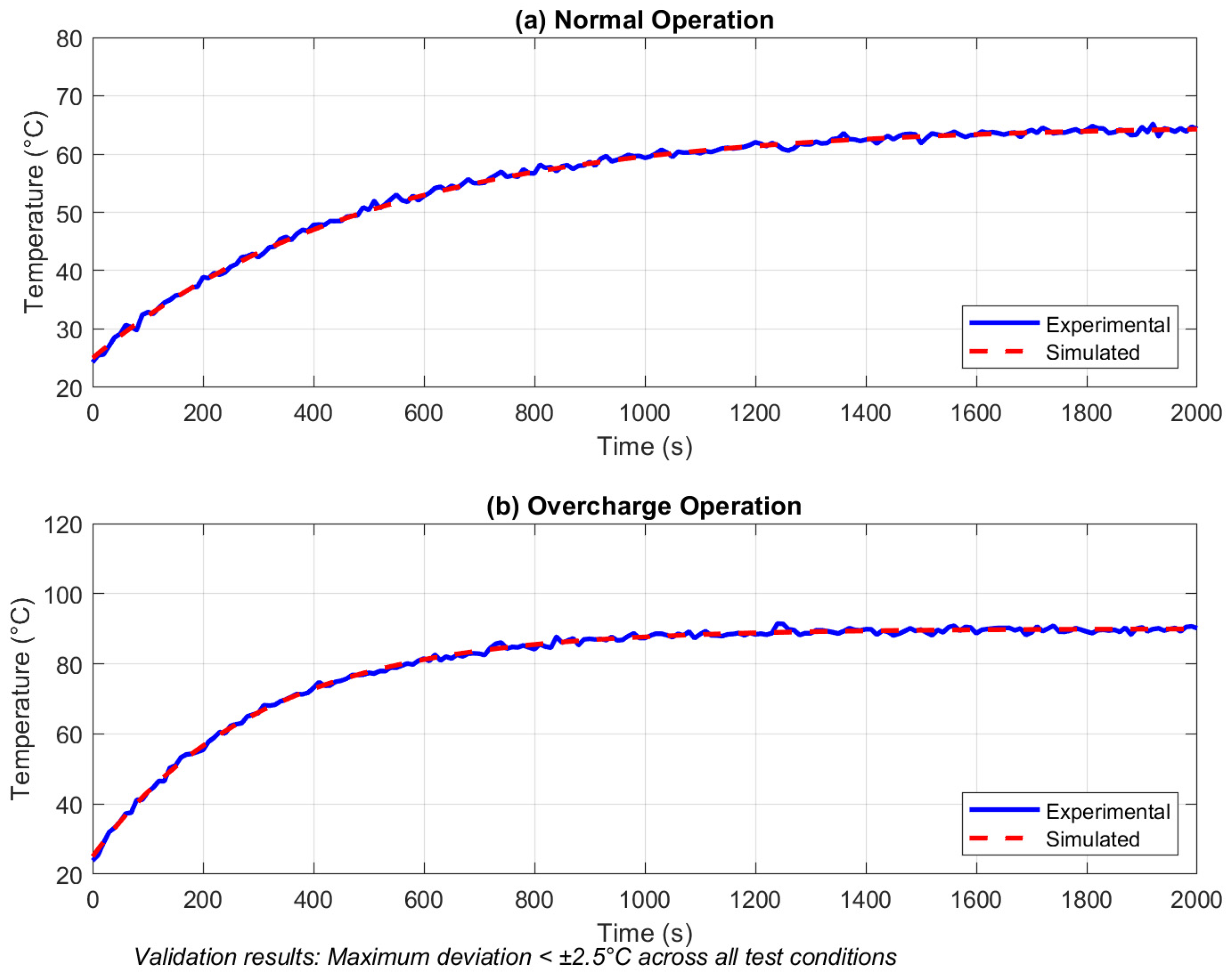 Figure 9), the simulated temperature evolution curves for both normal and overcharge operations show excellent agreement with the experimental measurements, with a maximum deviation of less than ±2.5 °C throughout the test duration. This close correlation between simulation and experiment underscores the high fidelity of our numerical model and provides a solid foundation for the subsequent machine learning analysis, ensuring the dataset accurately reflects the thermal failure characteristics of Li-S batteries.