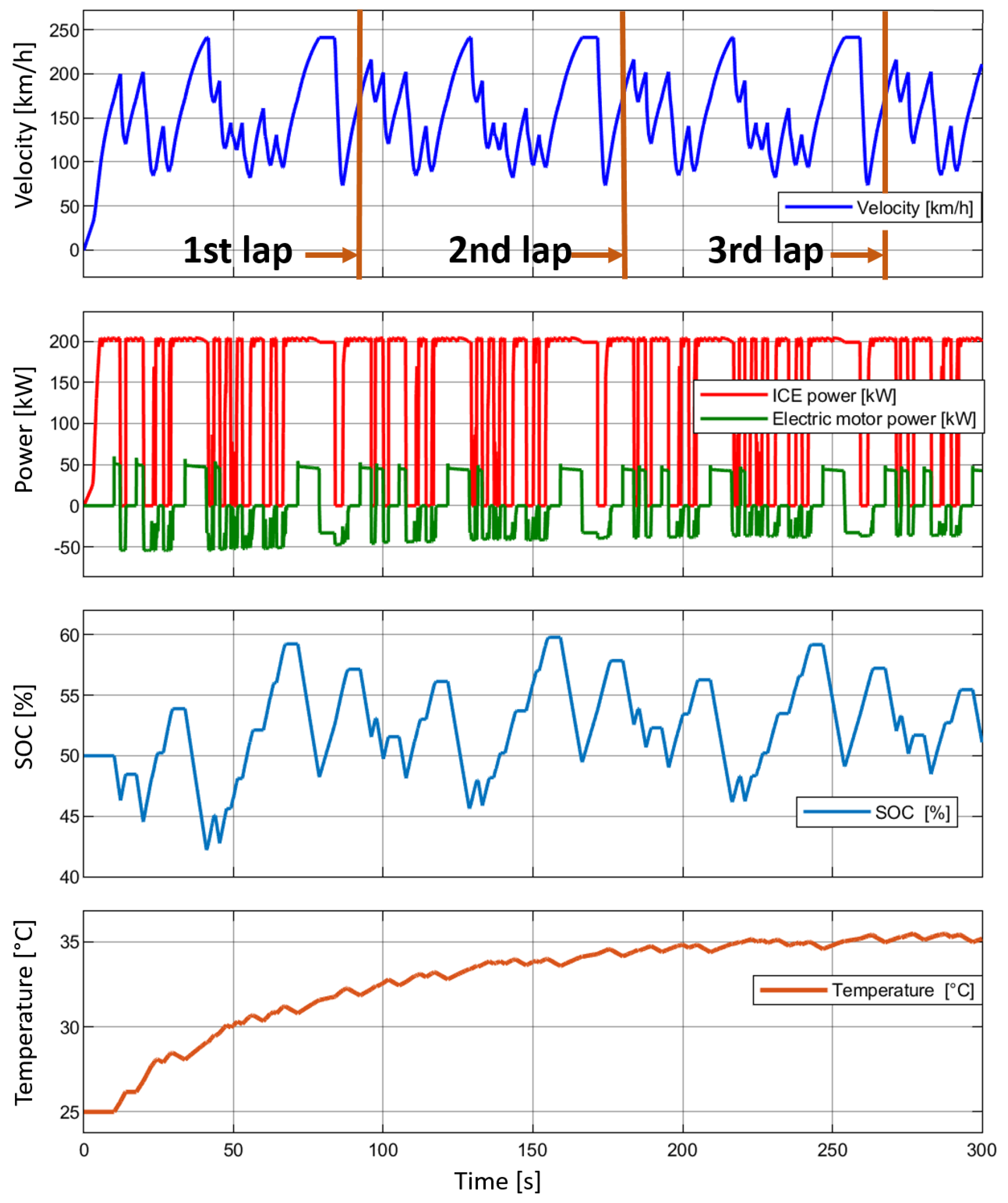 Malikov, R.; Iturralde, P.; Karpukhin, K.; Karpukhin, F.; Zimov, R. Development of a Power Flow Management Strategy for a Hybrid Racing Car Aimed at Minimizing Lap Time. World Electr. Veh. J. 2025, 16, 558. https://doi.org/10.3390/wevj16100558