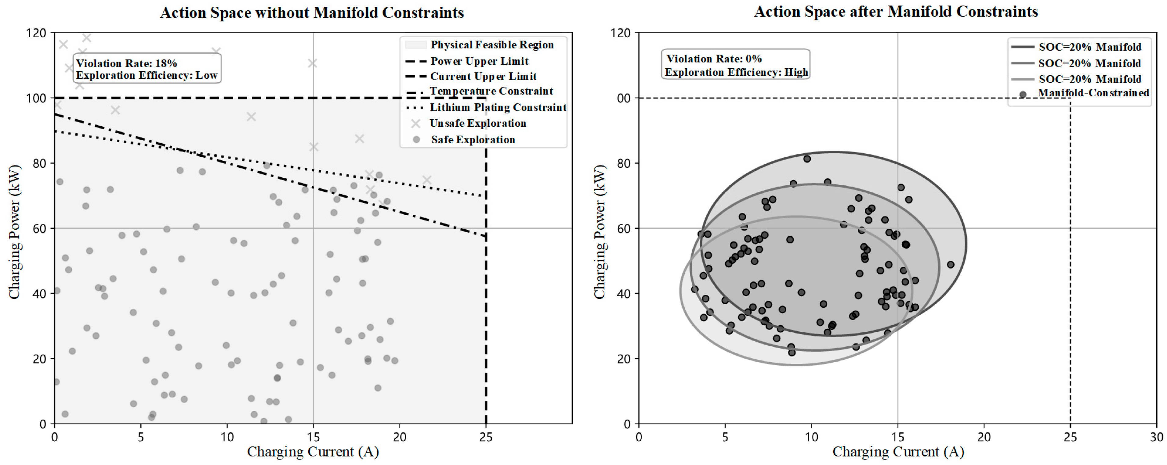 Existing charging strategies can be broadly classified into three categories: rule-based, model-based, and data-driven. Rule-based methods like constant current–constant voltage (CC–CV) are simple to implement but lack adaptability to dynamic conditions. Model-based methods that explicitly encode constraints but struggle with parameter drift and computational complexity [