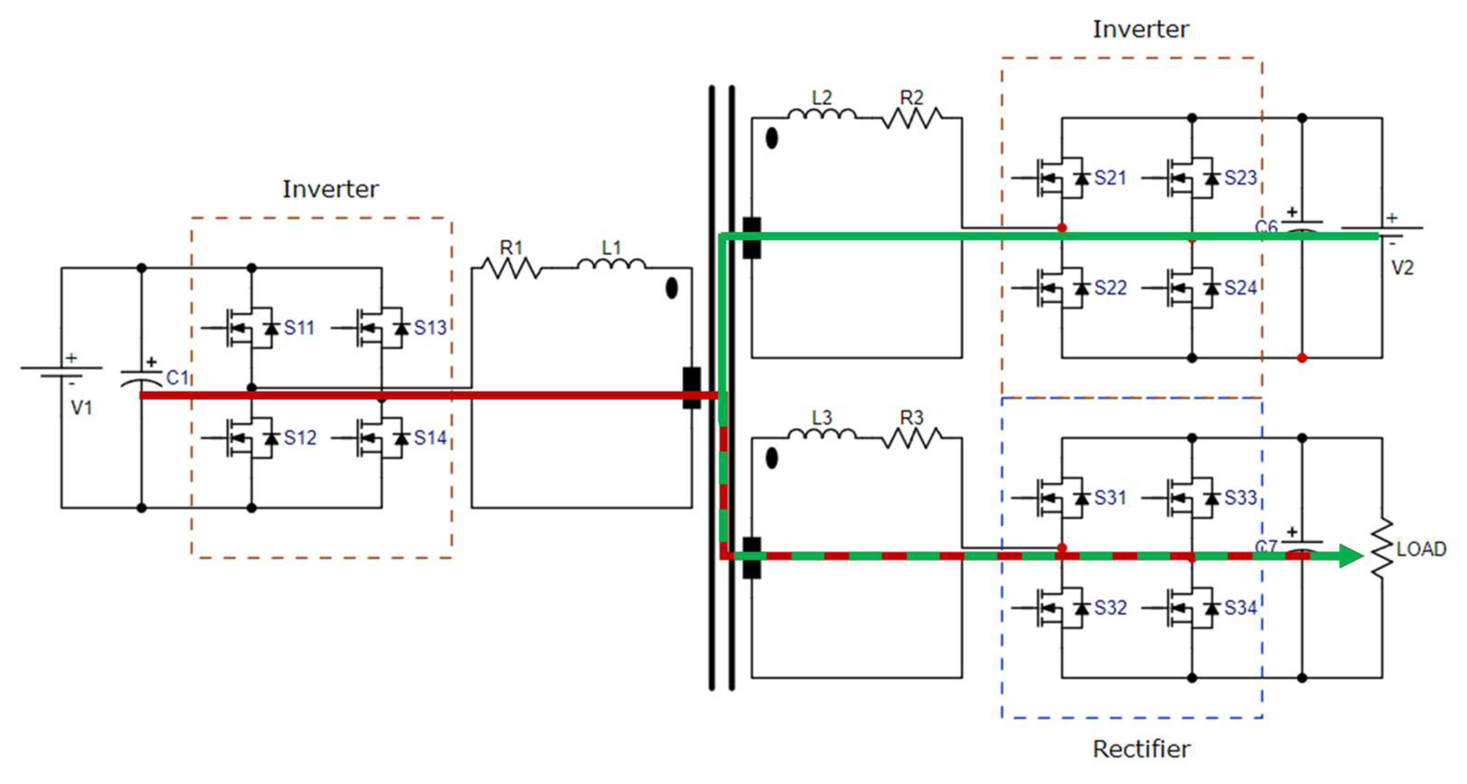 Figure 1 illustrates the TAB as depicted in Case I. On the left side of the figure is the inverter, comprising an H-bridge with switches designated