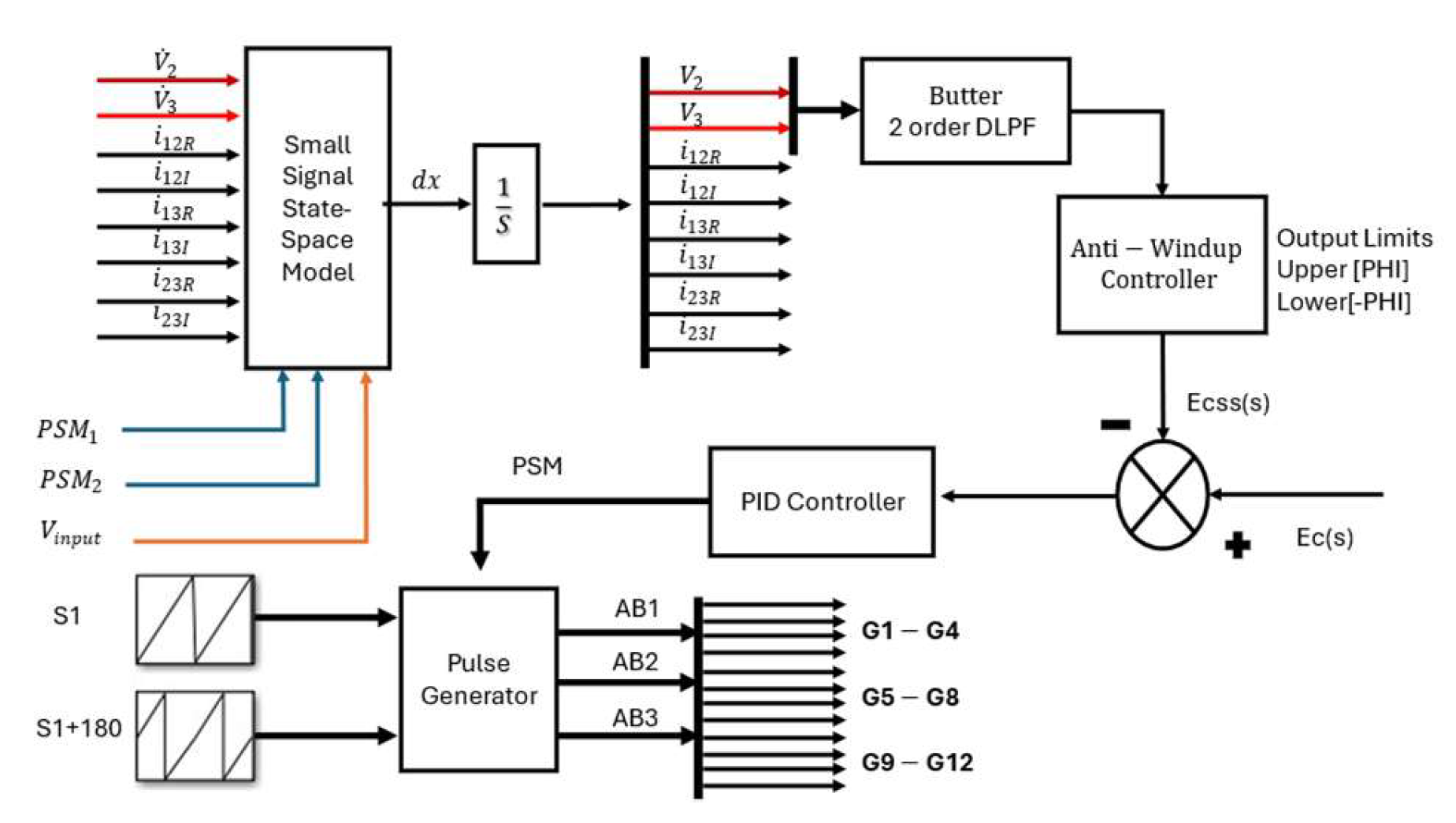 Figure 5 shows the simulation block diagram, including the small-signal state-space model, PID-based controller, and pulse-generation stage. This diagram clarifies the structure of the simulated environment, addressing the reviewer’s request for a more explicit description of the simulation setup.