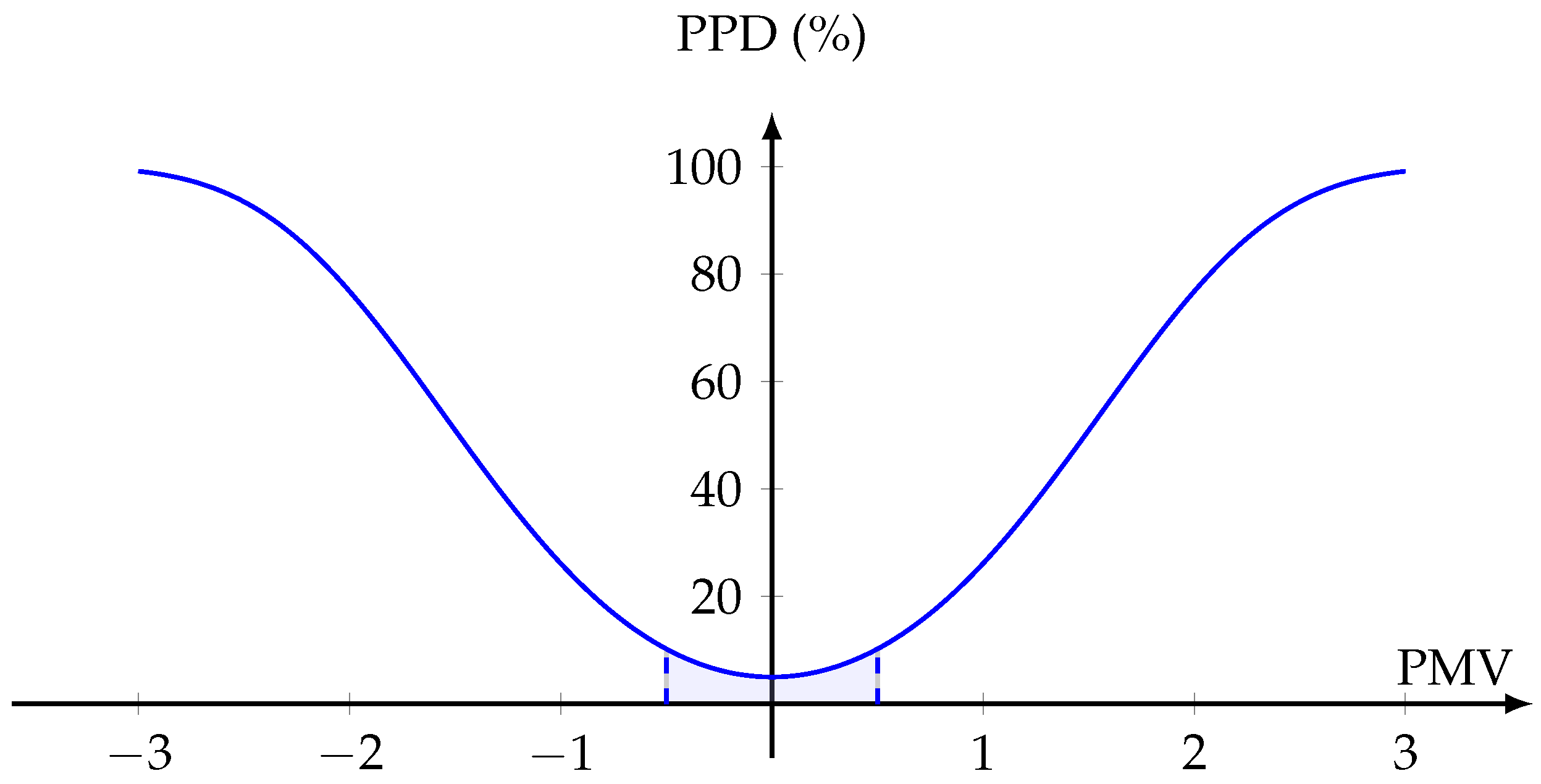 Section 3.1.5, an acceptable thermal comfort environment is defined by a PPD of 10%, corresponding to
