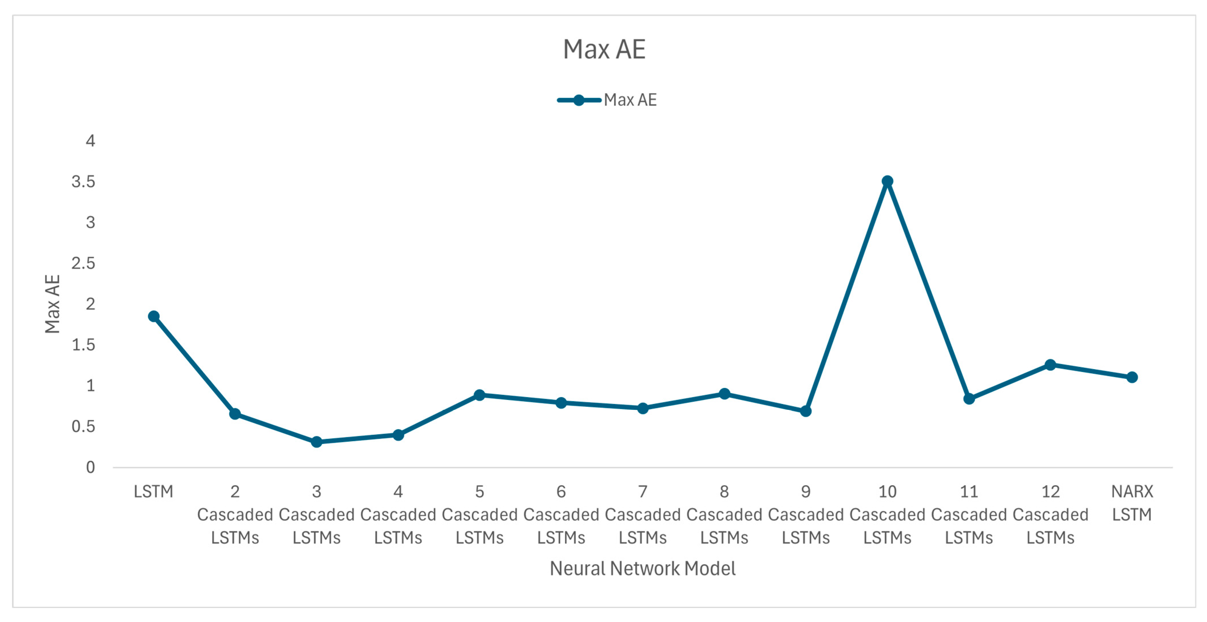 Figure 6 shows the Maximum Absolute error for the different models of RNN.