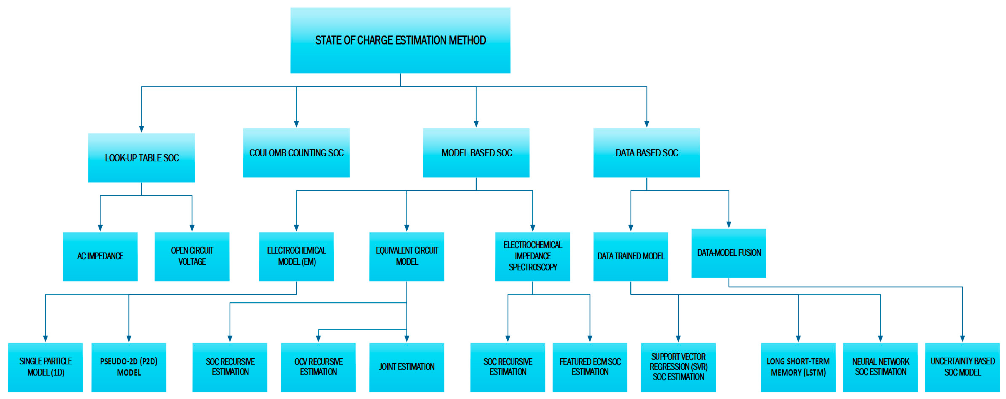 - Data-driven approaches use machine learning and AI models trained on historical battery data. Data Trained Model uses historical data (voltage, current, temp) to train predictive models. Examples of the data trained models include Support Vector Regression (SVR), SOC Estimation, Long Short-Term Memory (LSTM), Neural Network SOC Estimation, etc. Another new data-based method is the Data-Model Fusion SOC Method, which combines physical models with data-driven insights for robust SOC estimation [9,145]