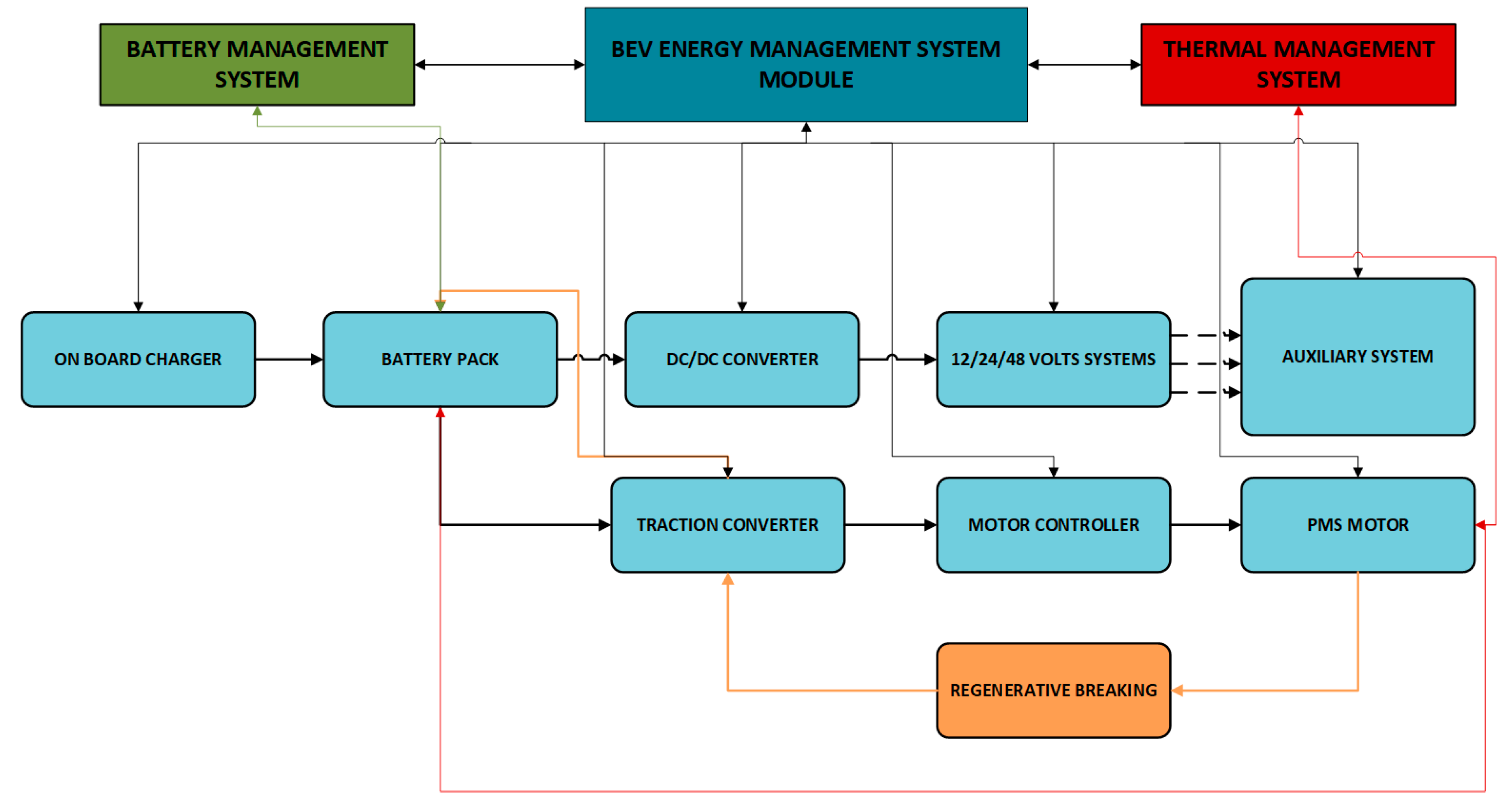 - The BMS does not work in isolation; it communicates with other vehicle systems and external devices. Typically, a BMS connects to the vehicle’s control network (often via CAN bus, the Controller Area Network) to exchange data with the Vehicle Control Unit (VCU), charger, thermal system, and more [147]. Through this interface, the BMS can receive commands like the charge current limits from a charger and send out information like SOC, SOH, temperature, or fault alarms. Many EV BMS also support diagnostic connections and sometimes telemetry, for example, logging data to cloud systems or apps [147]. Additionally, some BMS have wireless or Bluetooth capabilities for certain uses (in smaller systems), though in automotive EVs, the primary interface is a wired bus for reliability [148]. As EVs adopt over-the-air (OTA) updates, the BMS firmware itself can be updated remotely to improve algorithms or address issues, which requires secure communication links [148,149]. In summary, robust communication allows the BMS to integrate into the EV’s ecosystem, coordinate charging, and even participate in energy management at a higher level, like vehicle-to-grid scenarios.