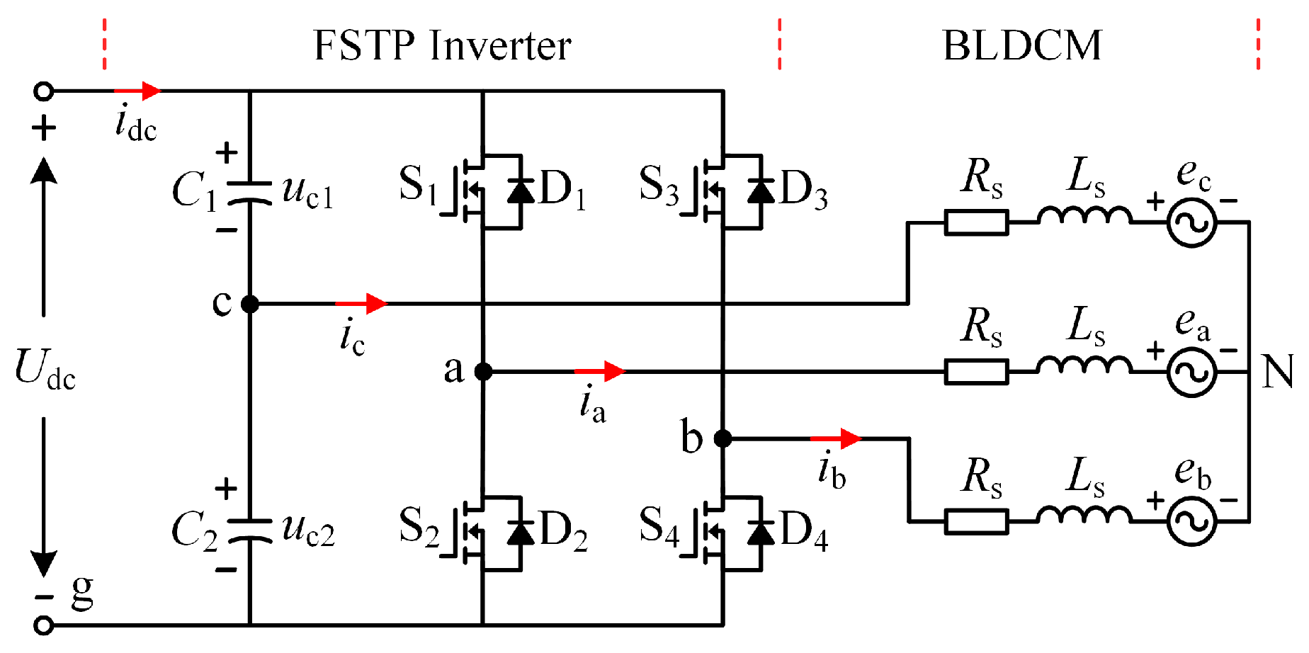 2.1. Mathematical Model of BLDCM Driven by FSTP Inverter