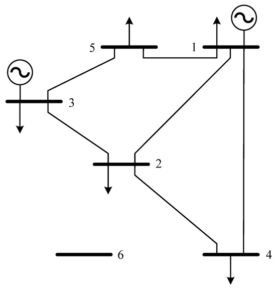 To validate the effectiveness of the method proposed in this paper, a case study analysis is performed on the Garver-6 system, which is illustrated in Figure 4. The original network of the Garver-6 bus system is a 5-bus system. Bus 1 and Bus 3 currently host generators with capacities of 150 MW and 360 MW, respectively. An additional 600 MW generator will be added to Bus 6 in the future. The system load and generator parameters are provided in Table 1, and the system line parameters are detailed in Table 2.