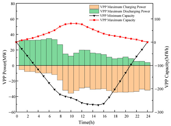 where represents the upper and lower bounds of the feasible region for the VPP’s virtual energy storage model at time t, and .