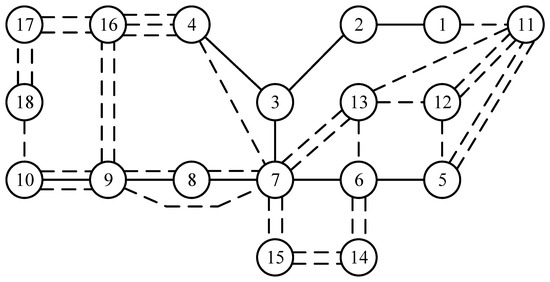 To further validate the general applicability of the proposed planning model, a simulation analysis is conducted on the Garver-18 system. The buses and lines designated for expansion in this system are shown in Figure 11.