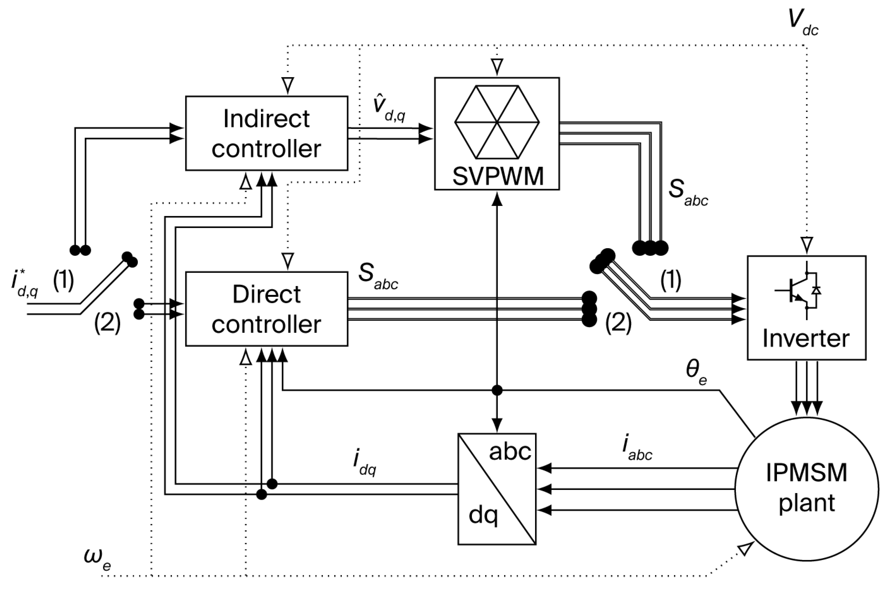 2]. The physical characteristics of an IMPSM and its three-phase inverter introduce strong non-linearity in the system, increasing the complexity of the control problem. With high requirements for the acceleration and deceleration of the vehicle engine, IPMSMs require sophisticated control algorithms.