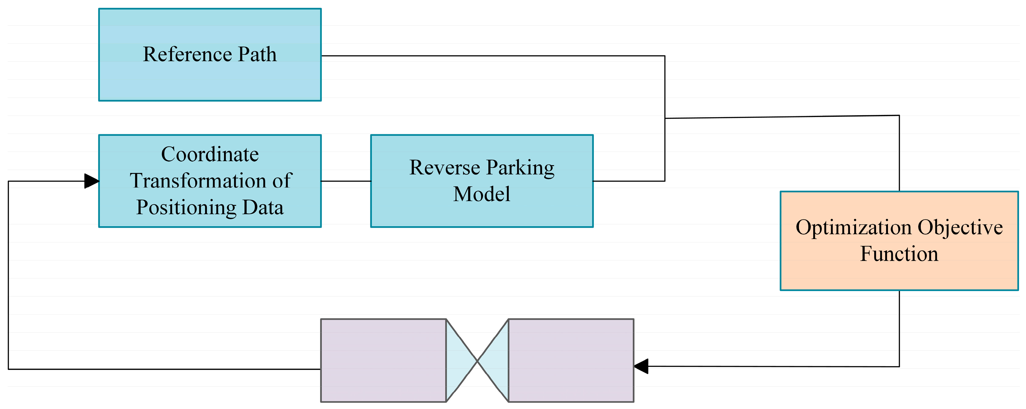 Under reverse driving conditions, the original front axle effectively becomes the rear axle. As a result, the kinematic model of the articulated steering vehicle must be re-derived. The theoretical foundation is derived from existing research [
