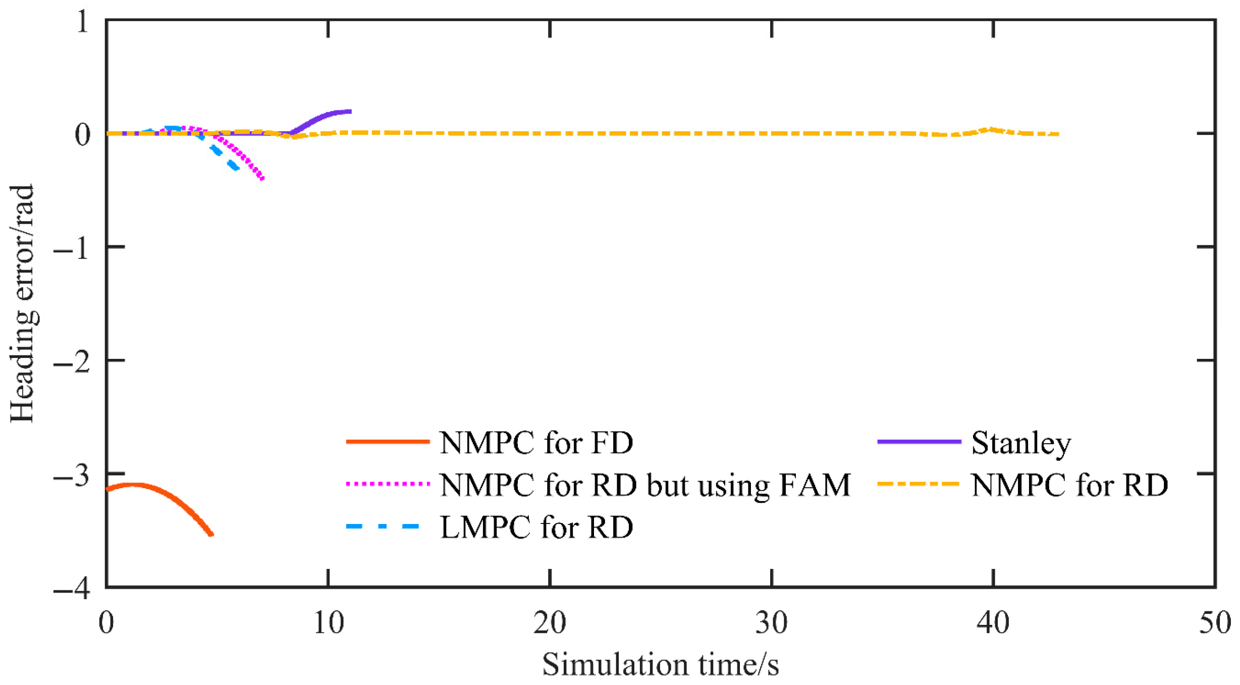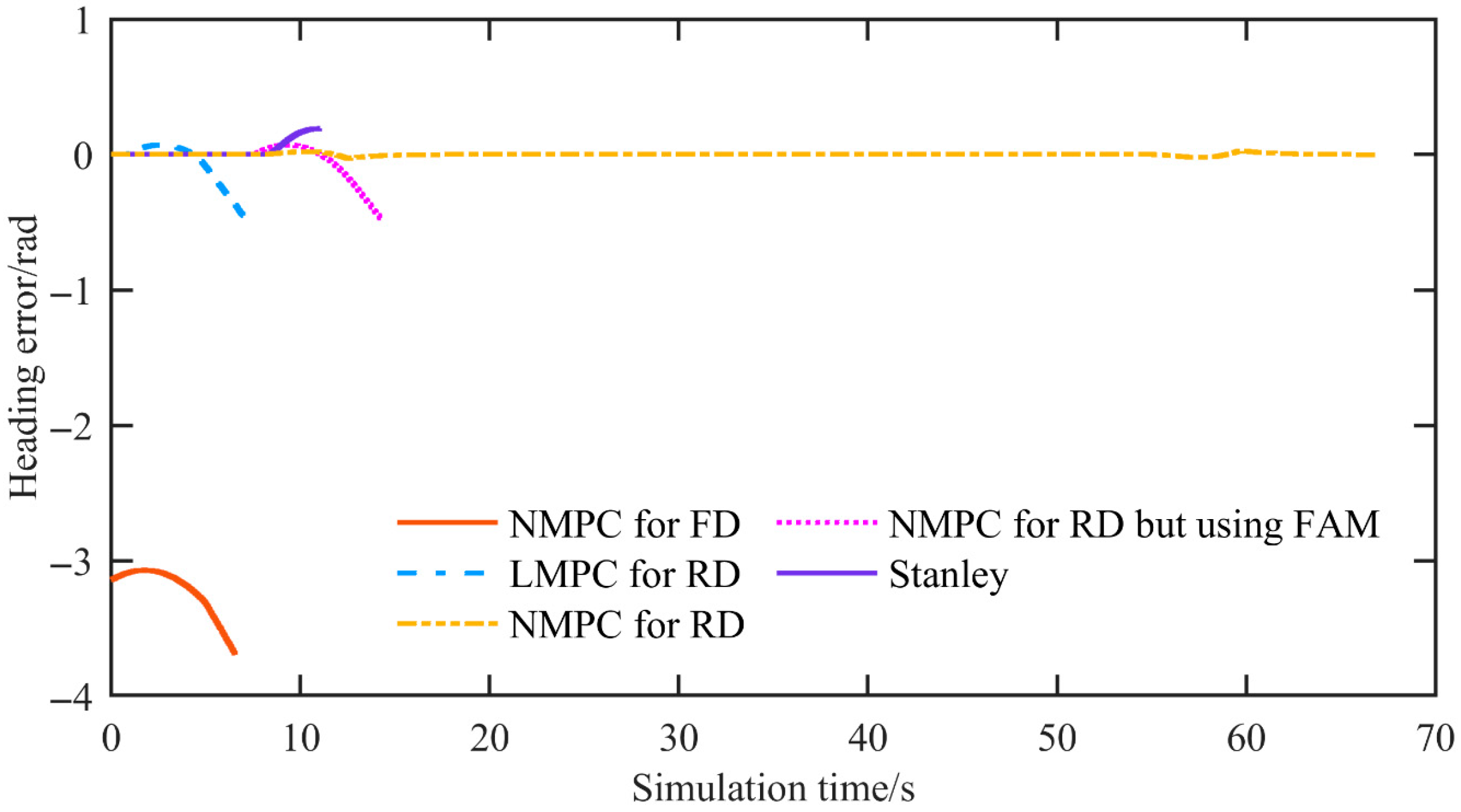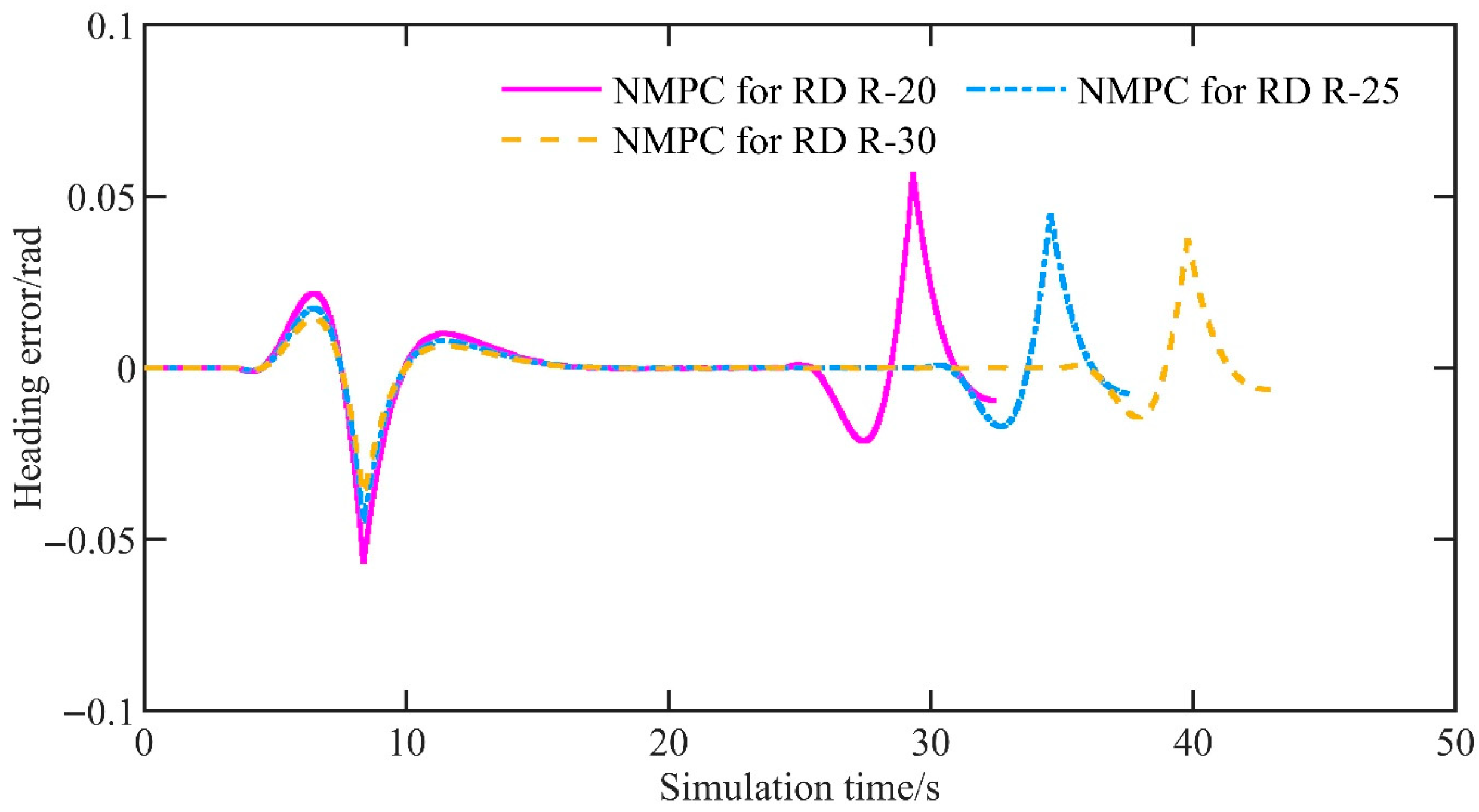 14]. Nonlinear MPC (NMPC) has shown stable performance at higher speeds, with notable improvements in tracking accuracy [