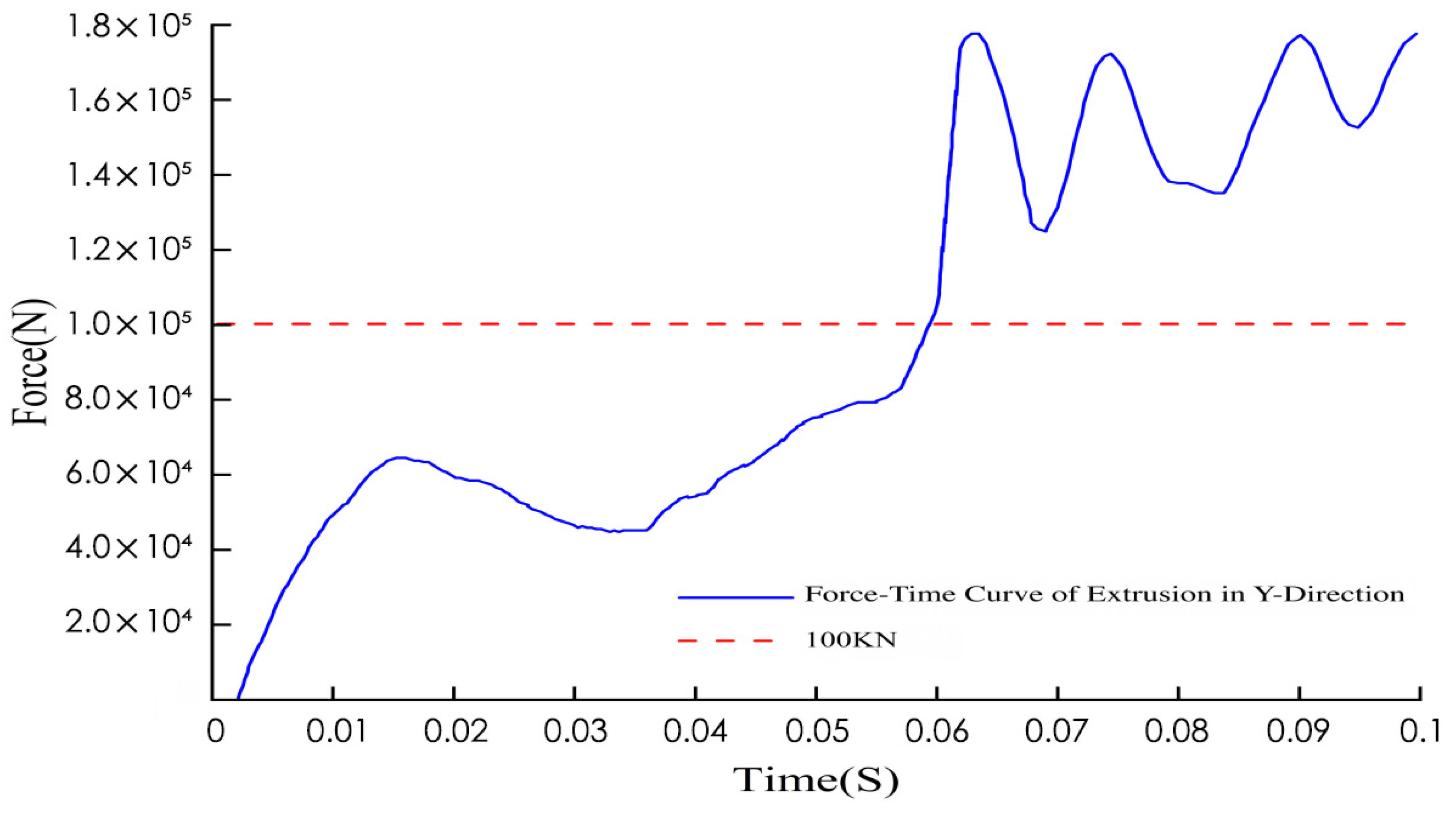 Figure 9. From 0 to 0.02 s, the extrusion force jumped to approximately 4 × 10