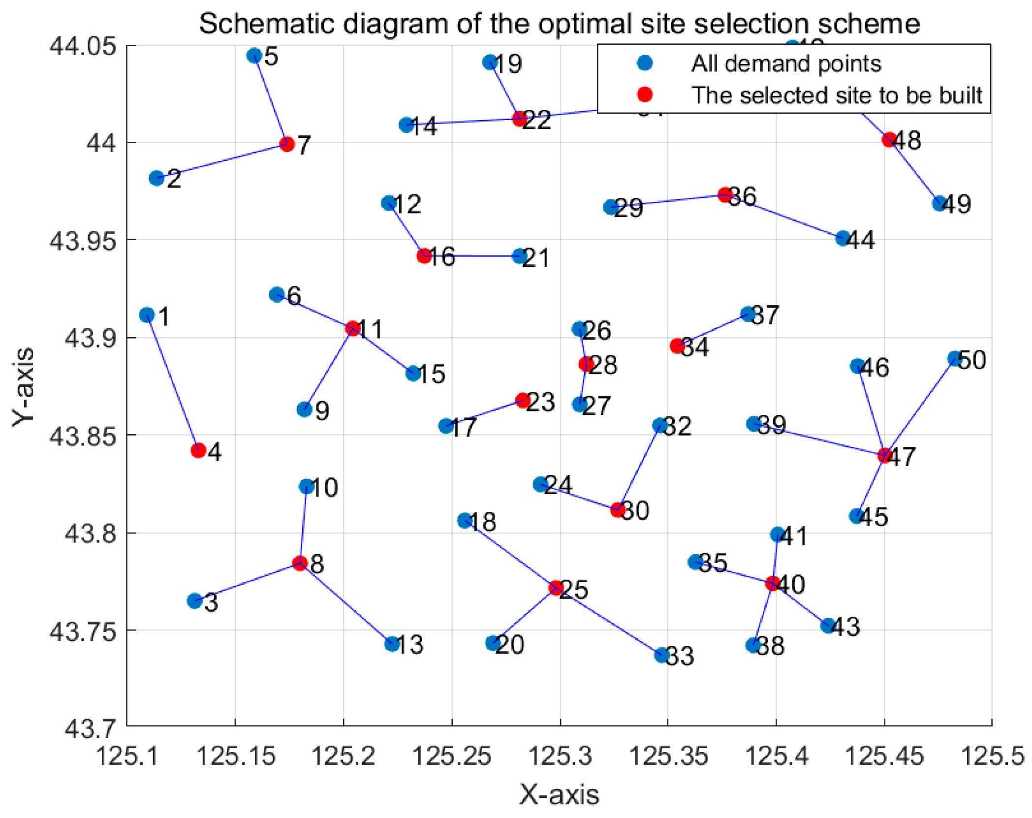 - Termination Conditions. If the number of iterations reaches the upper limit or the temperature drops to the threshold, the algorithm will be terminated, and the current optimal website location and volumetric determination plan will be output.