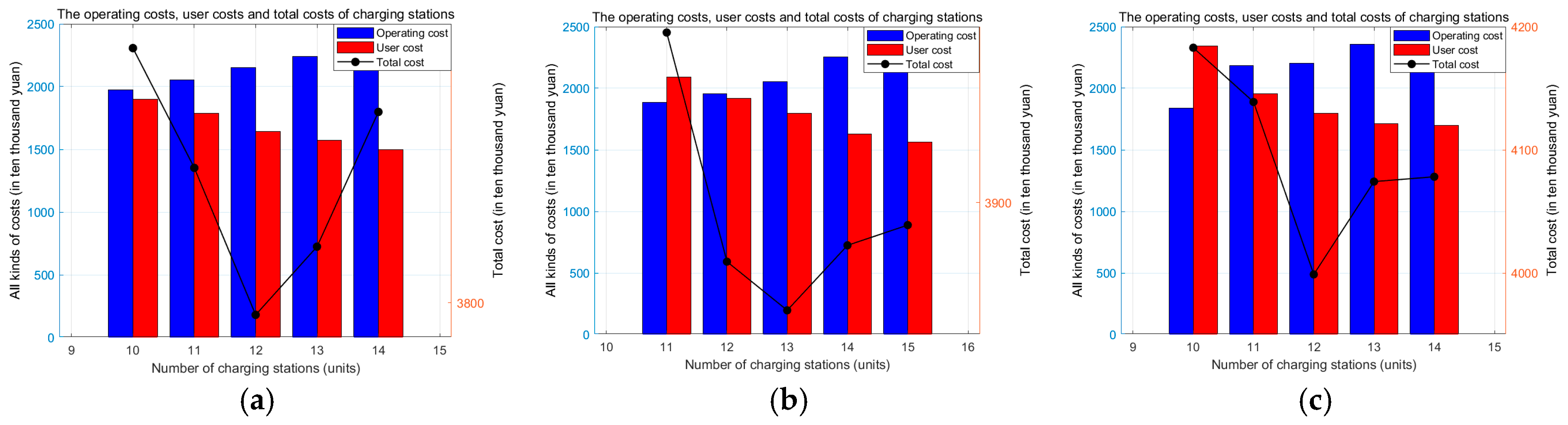 | Site Selection Plan: Number of Charging Stations | Models | Operating Costs (Ten Thousand Yuan) | User Cost (Ten Thousand Yuan) | Total Cost (Ten Thousand Yuan) |