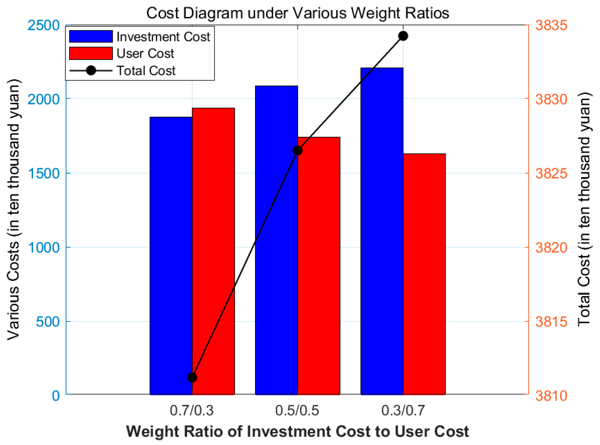 - Scenario 2: Investment costs 50%, user costs 50% (The original equal-weight setting)