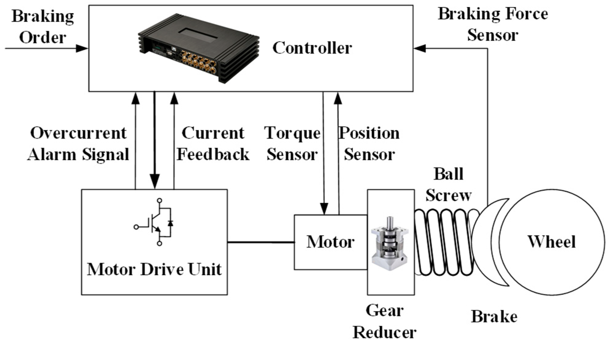 - Jo, C.; Hwang, S.; Kim, H. Clamping-Force Control for Electromechanical Brake. IEEE Trans. Veh. Technol. 2010, 59, 3205–3212. [Google Scholar] [CrossRef]