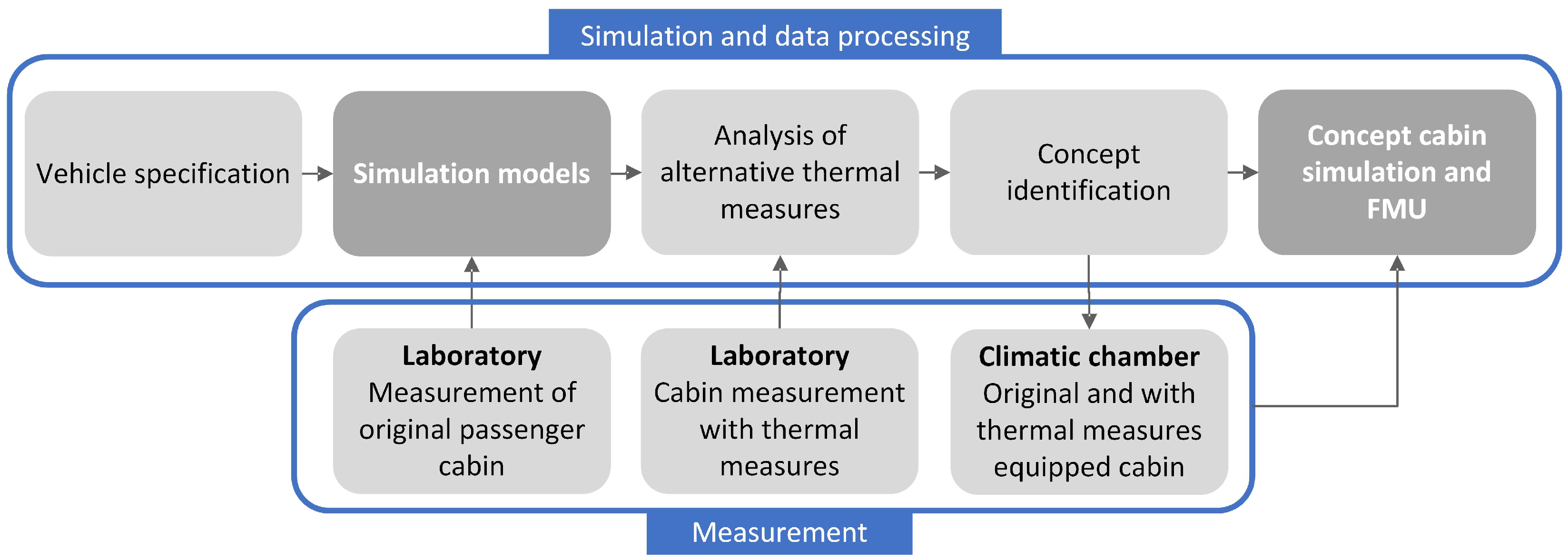 - Electric Truck Focus: The study highlights the thermal aspects of electric truck cabins and fills a key gap in current research. An electric truck cabin with these types of measures was investigated and validated with real measurement data. The measurements made it possible to build an accurate 1D model and support further development.