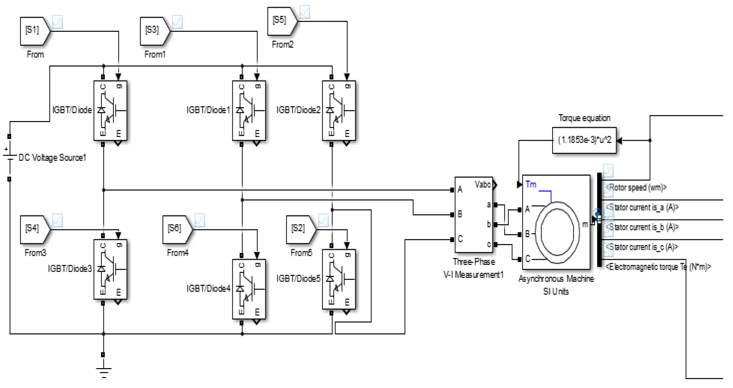 The dataset was generated using a MATLAB/Simulink-based Variable Frequency Drive (VFD) model as shown in Figure 1. The model includes an inverter, speed control, and torque load subsystems. The following fault conditions were simulated: