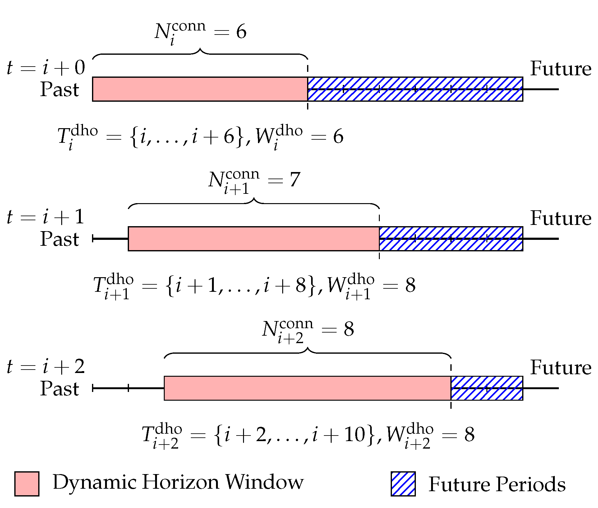 Dynamic horizon adjustment that scales prediction windows based on EV connection patterns and renewable generation.