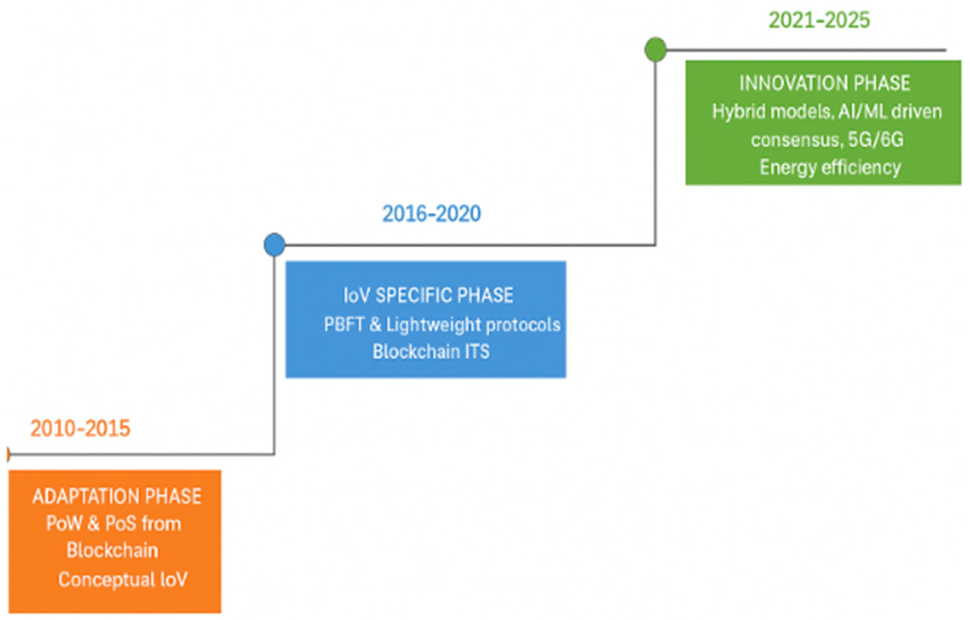 | [3] | Blockchain applications in IoV | Medium | Focuses on application layer; lacks analytical treatment of consensus protocols | Integrates consensus-level benchmarking and analytical synthesis connecting design features with IoV requirements. |