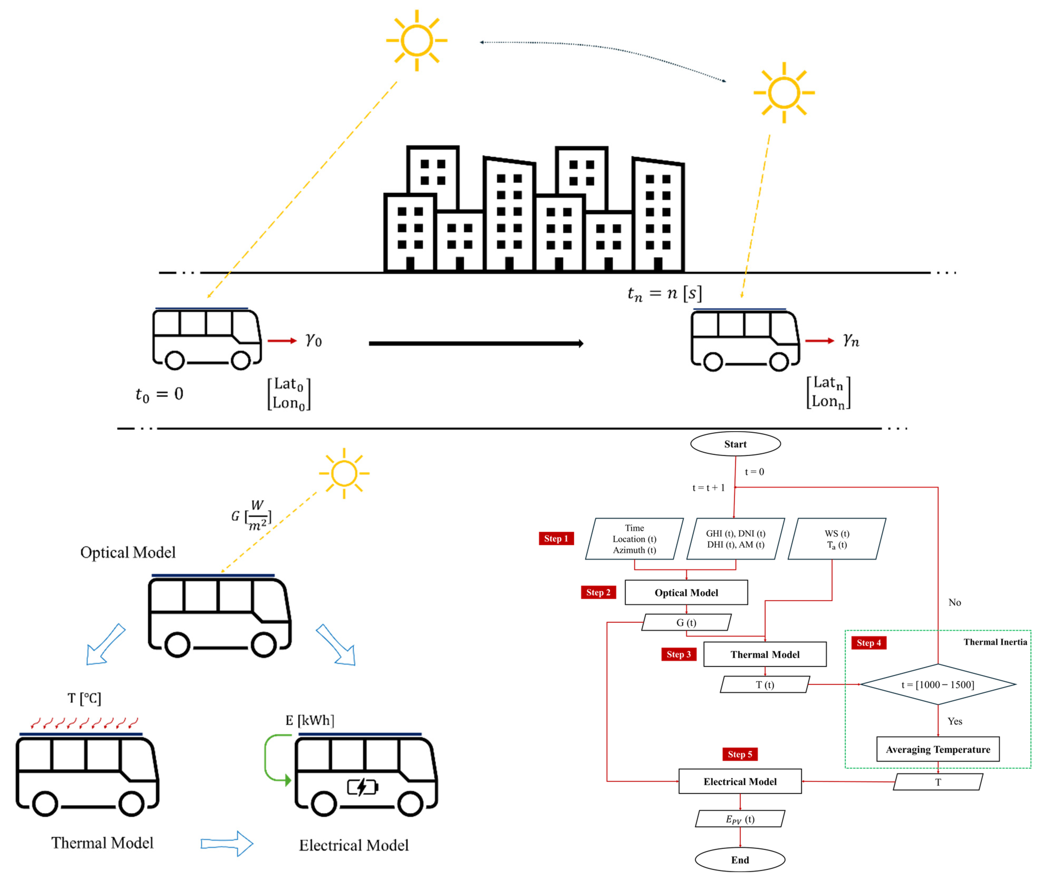 - Oh, M.; Kim, S.-M.; Park, H.-D. Estimation of photovoltaic potential of solar bus in an urban area: Case study in Gwanak, Seoul, Korea. Renew Energy 2020, 160, 1335–1348. [Google Scholar] [CrossRef]