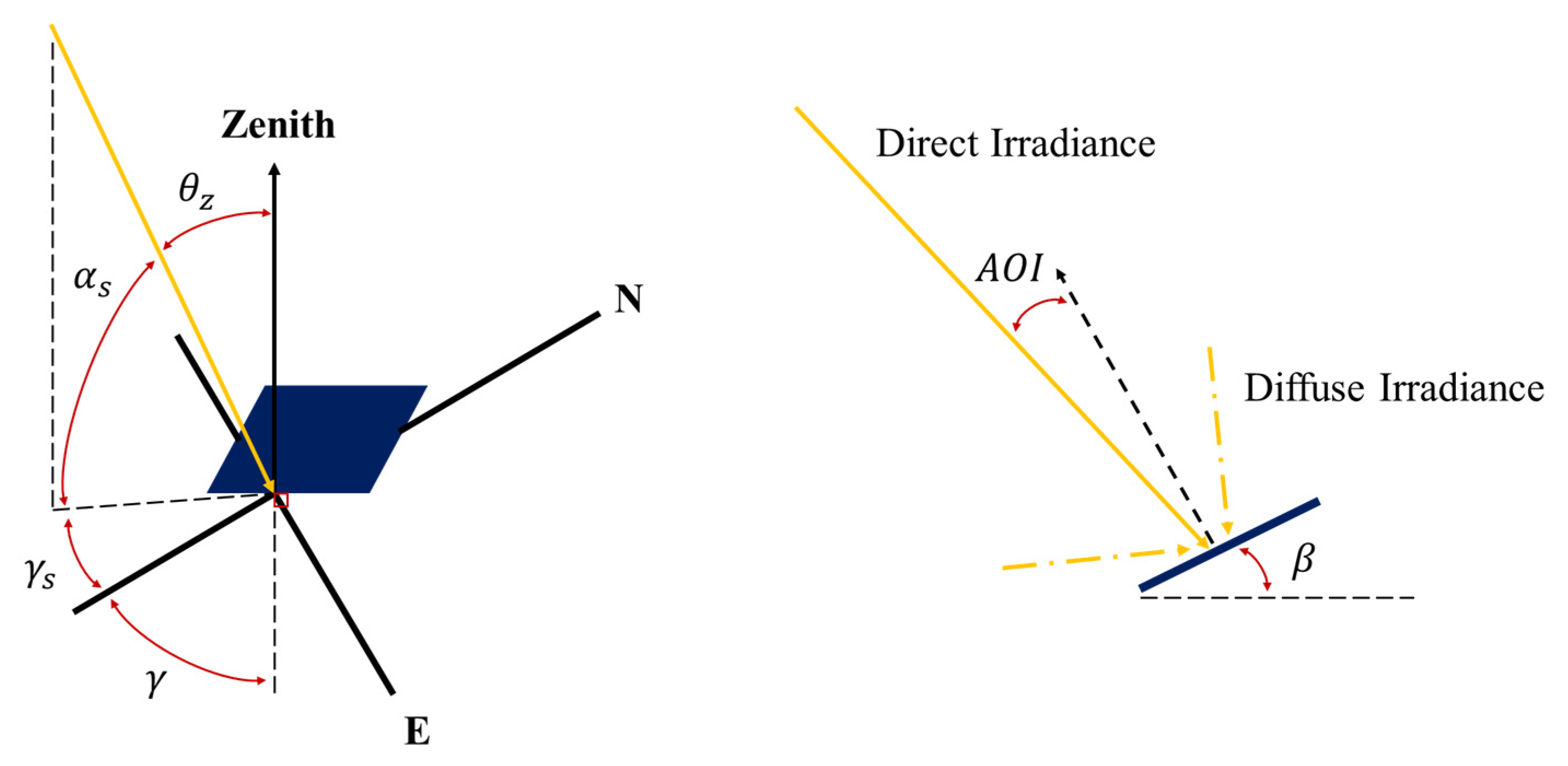 - Araki, K.; Ota, Y.; Nagaoka, A.; Nishioka, K. 3D Solar Irradiance Model for Non-Uniform Shading Environments Using Shading (Aperture) Matrix Enhanced by Local Coordinate System. Energies 2023, 16, 4414. [Google Scholar] [CrossRef]