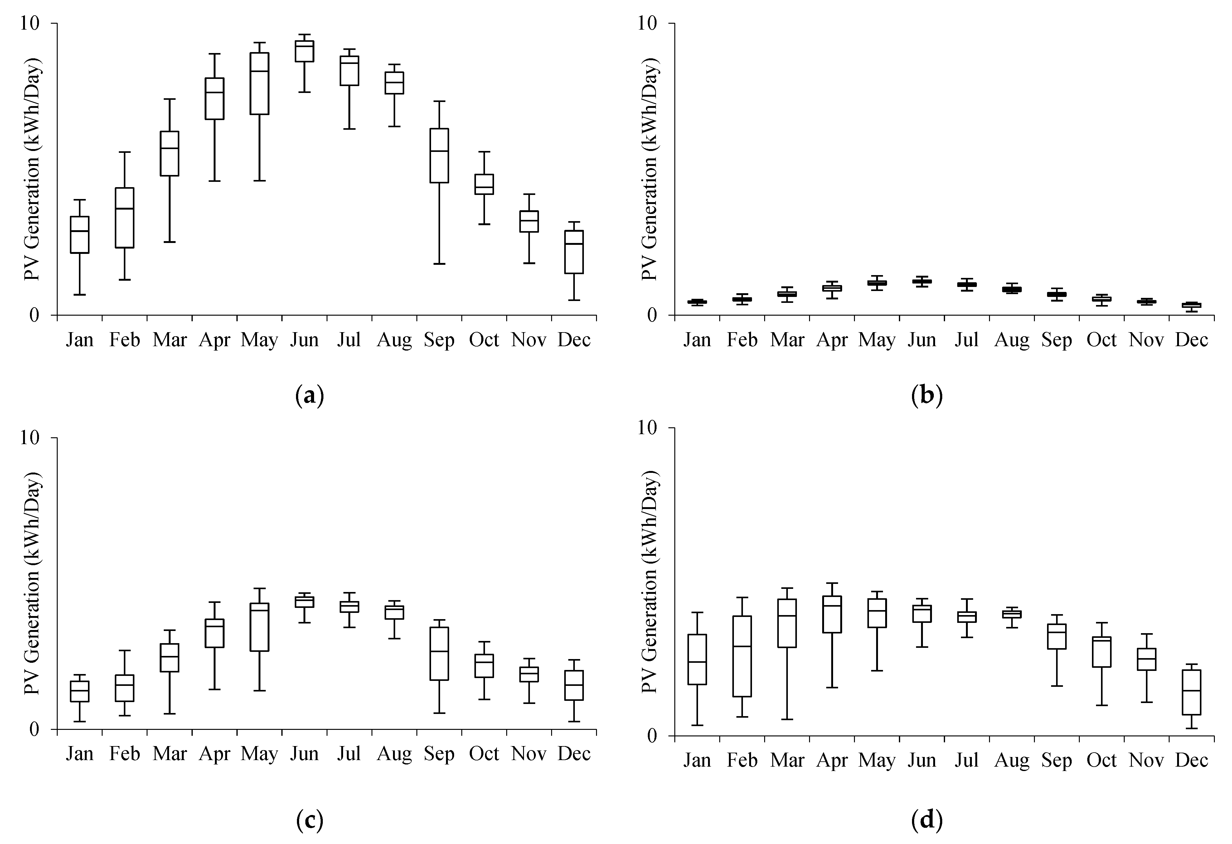 - Park, C.; Park, H.; Jeon, H.; Choi, K.; Suh, J. Evaluation and Validation of Photovoltaic Potential Based on Time and Pathway of Solar-Powered Electric Vehicle. Appl. Sci. 2023, 13, 1025. [Google Scholar] [CrossRef]