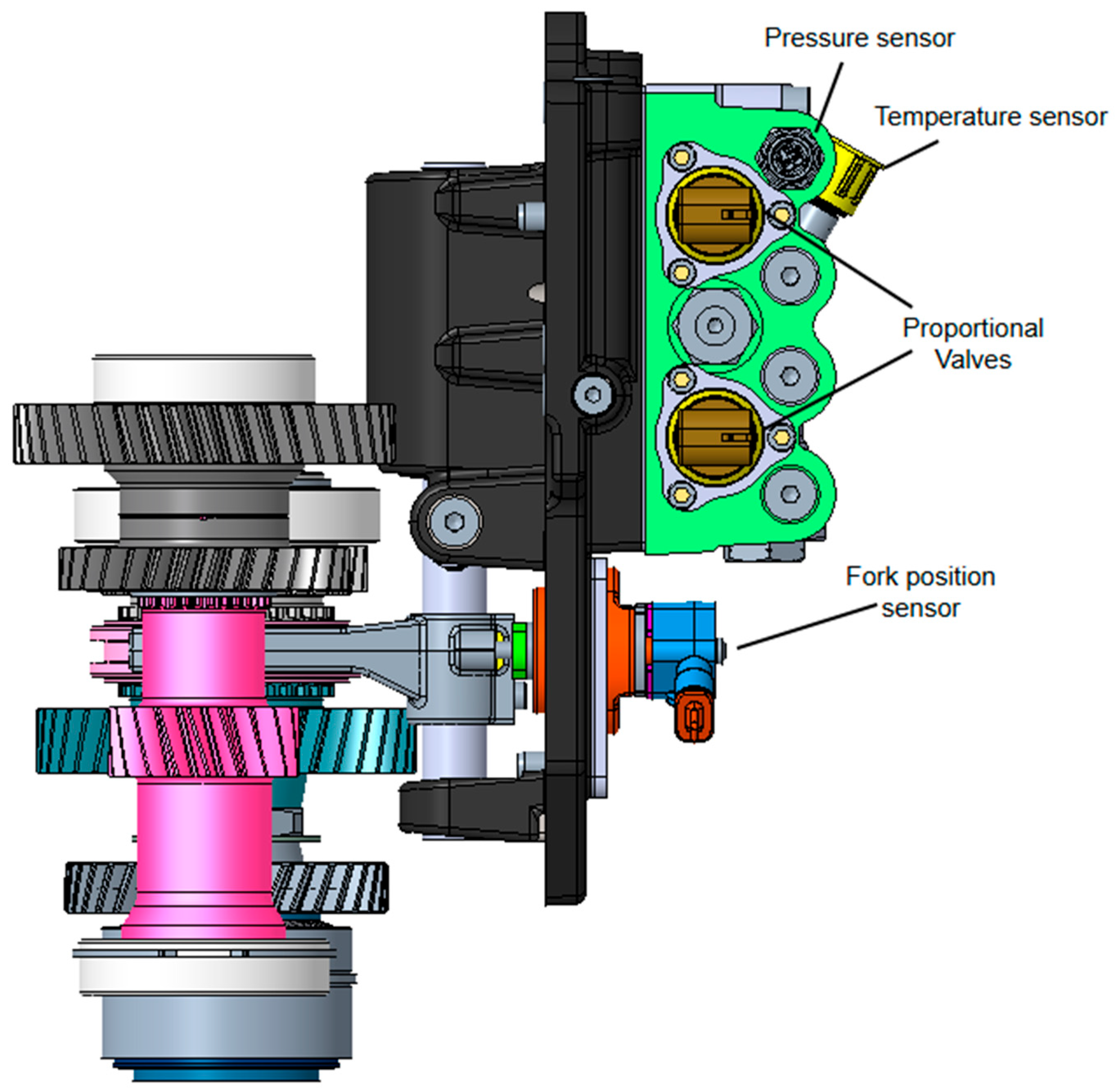 - Li, L.; Wang, X.; He, K.; Liu, Y.; Liu, C. Position and force switching control for gear engagement of automated manual transmission gear-shift process. J. Dyn. Syst. Meas. Control. 2018, 140, 081010. [Google Scholar] [CrossRef]