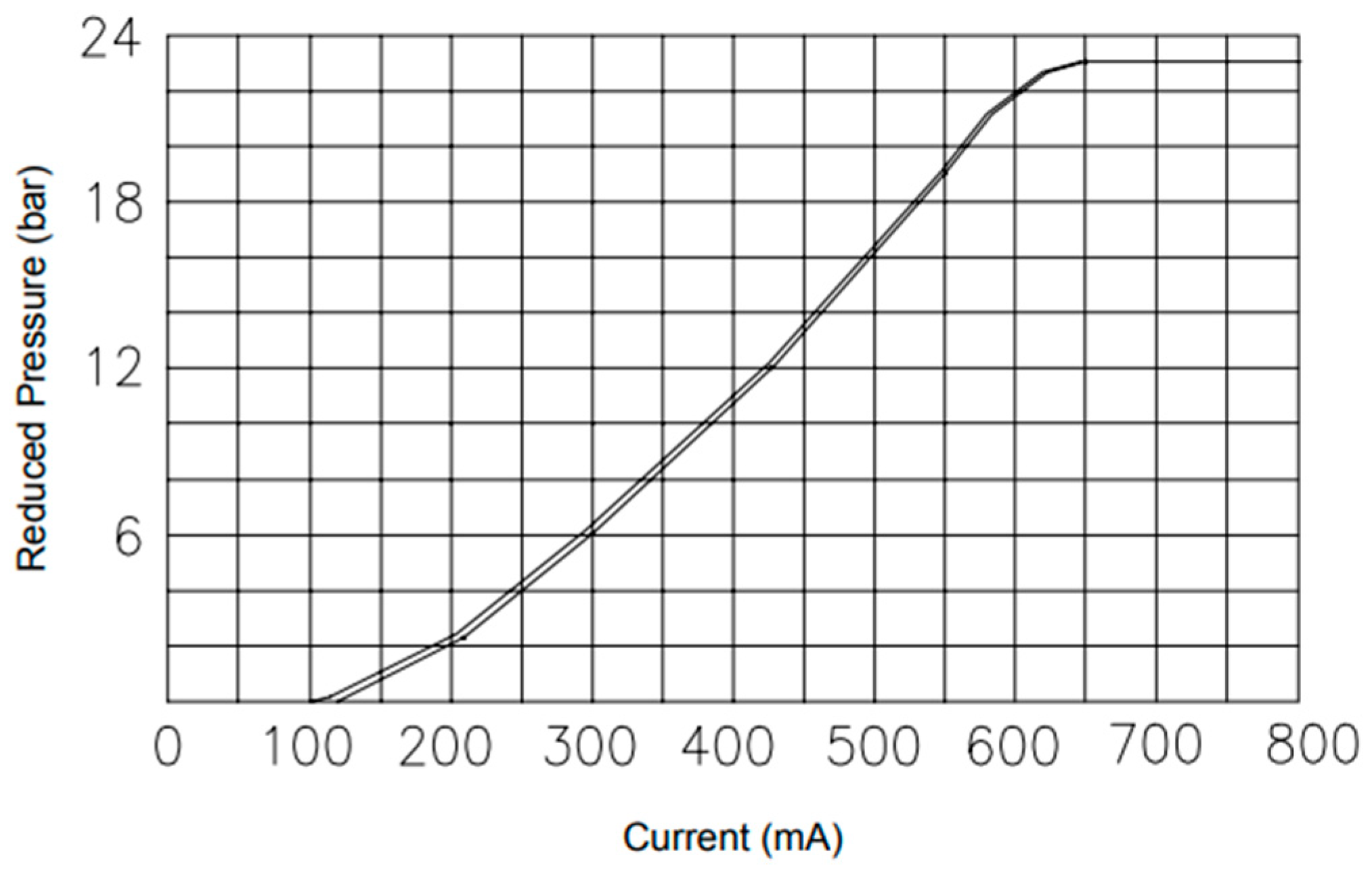 - Tecnord. Datasheet. Available online: https://www.tecnord.com/cartridge-valves/proportional-controls/pressure-reducing-relieving/ (accessed on 11 April 2025).