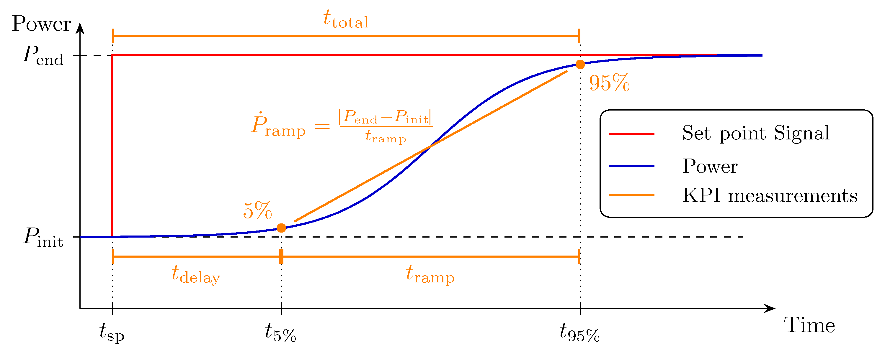 Total Reaction Time (): The combined time of and , representing the overall delay from when a setpoint is issued until the power output stabilizes.