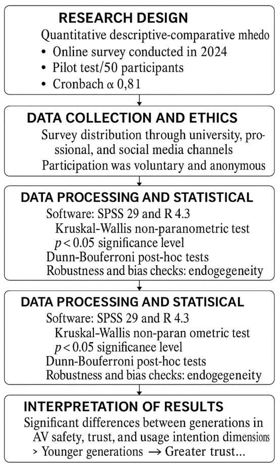 We have formulated the following hypothesis: the assessment of the safety and reliability of autonomous vehicles differs significantly between different generational groups, resulting in measurable differences in terms of acceptance and intention to use. This hypothesis is grounded in the notion that the acceptance of autonomous vehicles is not merely a technological or economic issue, but is strongly linked to generational identity, technological trust, and cultural experience.