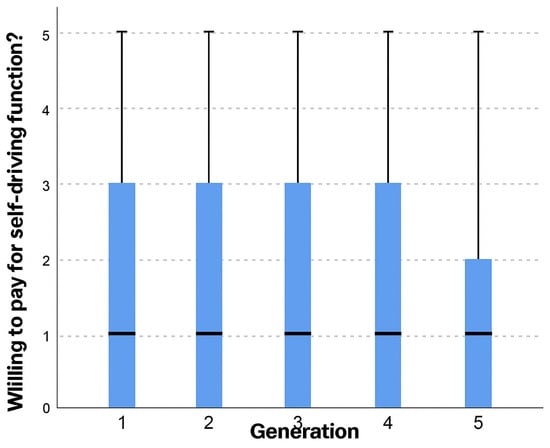 Generation X members have grown up in a time of technological change and have experience with the digital transition. This generation is sensitive to external influences and is also committed to sustainability and social responsibility in relation to autonomous driving [31]. However, they may also be skeptical about the changes brought about by self-driving technologies, which may be caused by their strong attachment to traditional driving [32].