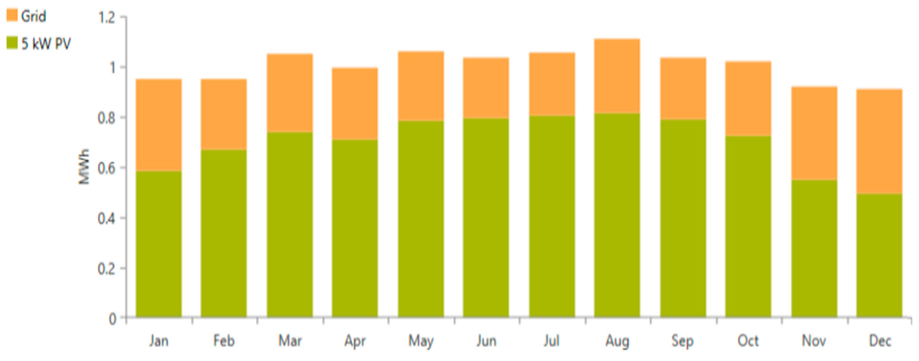 System 2—Grid–Solar: Grid electricity supplemented with a 5 kW PV array.